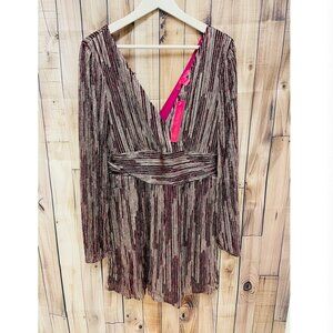Lilly Pulitzer Dress Riza Romper Long Sleeve Mulberry Gold Metallic Rope Stripe