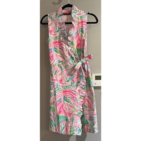 Lilly Pulitzer Dress Romee Wrap Ruffle Floral My World Cotton Stretch Womens XS