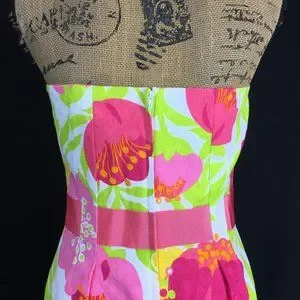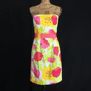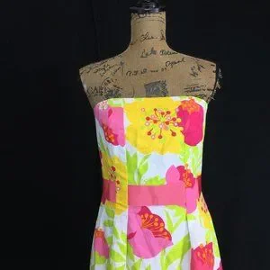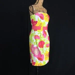 Lilly Pulitzer Dress Size 8 Bold Jumbo Floral Punch Cotton Knee Length Strapless