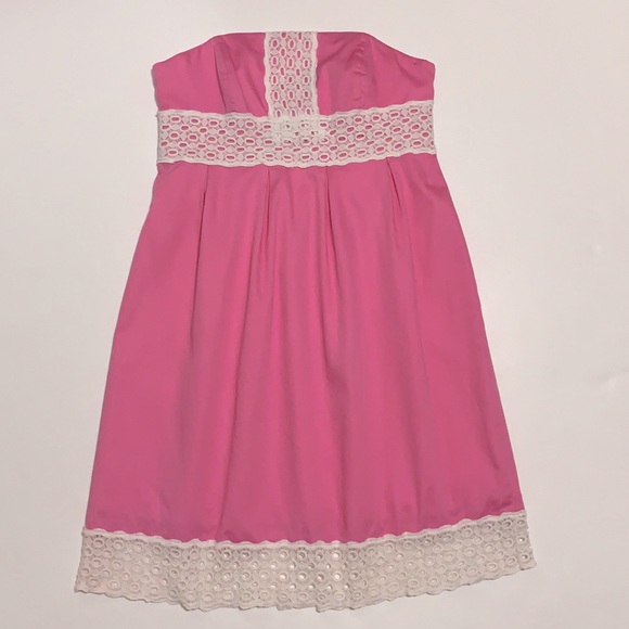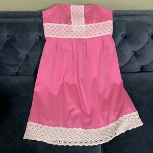 Lilly Pulitzer Dress Strapless Pink and White Appliqué Size 6