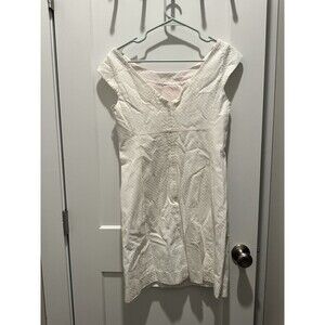 Lilly Pulitzer Dress White Quilt Embroidered Detail Dainty Shift Dress Size 6