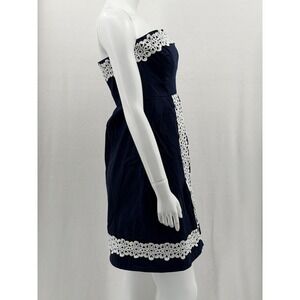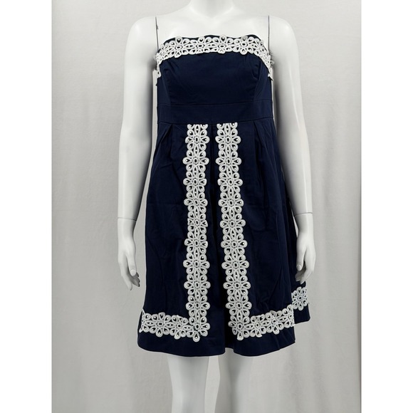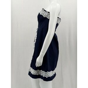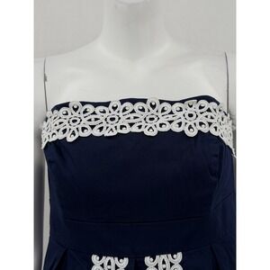 Lilly Pulitzer Dress Women 10 Navy White Betsey Strapless Lace Trim Resort Party