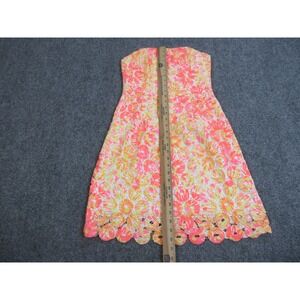 Lilly Pulitzer Dress Womens 4 Multicolor Floral Strapless Lace Fit & Flare Short