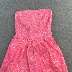 Lilly Pulitzer Dress Womens Extra Small Pink White Strapless Floral Summer Party