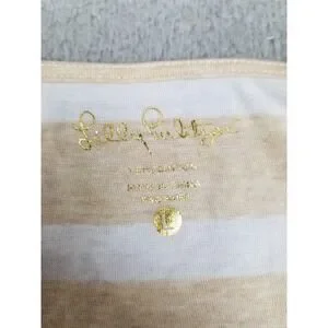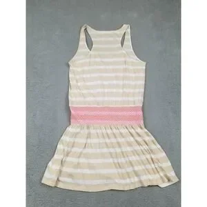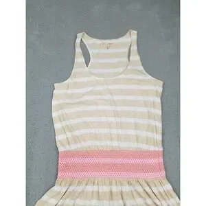 Lilly Pulitzer Dress Womens Large Tan White Striped Racerback Smocked 26719