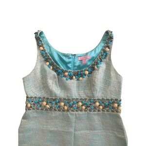 Lilly Pulitzer Dress Womens Size 6 Aqua Blue Metallic Beaded Sleeveless Shift