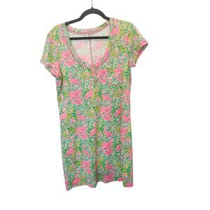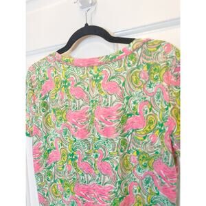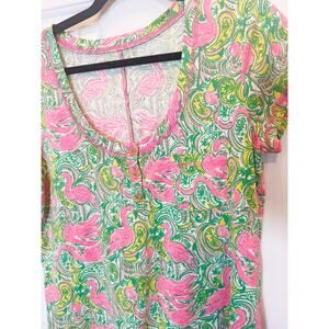 Lilly Pulitzer Dress Women's Size Large Green/Pink Britton Flamingo Print Mini