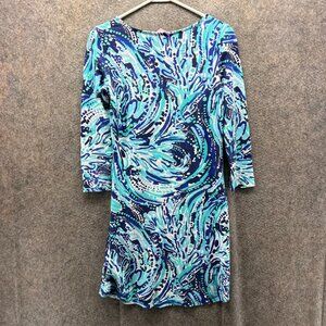 Lilly Pulitzer Dress Womens XS Blue Green Multicolor 3/4 Sleeve Stretch Print