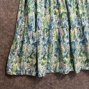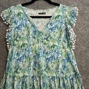 Lilly Pulitzer Dress Womens XS Blue Green Ruffle Pom Pom Sleeve Boho Summer Floral
