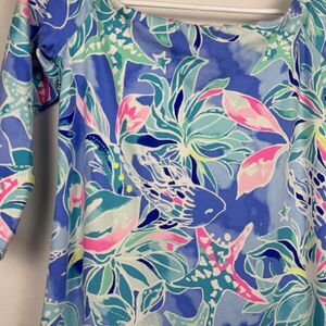Lilly Pulitzer Dress XS Blue Multicolor Off Shoulder Tropical Fish Starfish