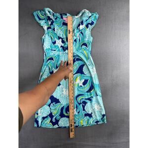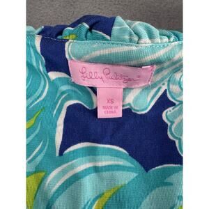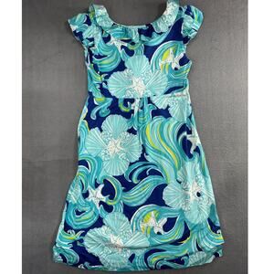 Lilly Pulitzer Dress Extra Small Blue Short Sleeve Tidal Wave Star Fish Sea Shells