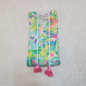 Lilly Pulitzer Dress XS Swim Cover Up Hooded Hoodie Tassel Neon Green Pink