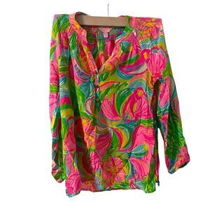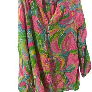 Lilly Pulitzer ELSA TOP 100% Silk Blouse Floral Size XXS