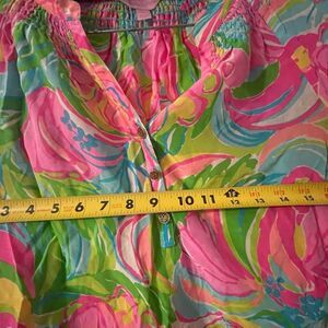 Lilly Pulitzer ELSA TOP 100% Silk Blouse Floral Size XXS. Measurements photographed. See pictures, please. Ships quickly (4020)