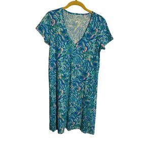 Lilly Pulitzer ETTA FLORAL PIMA COTTON SHIFT MINIDRESS IN SURF BLUE CORAL OF THE