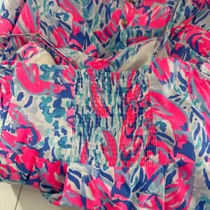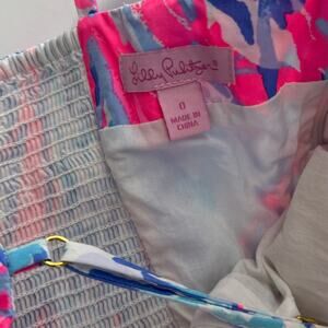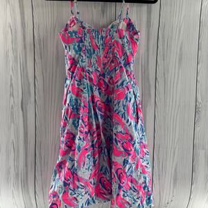 Lilly Pulitzer Easton Dress Cosmic Coral Size 0 Pink, Blue Gold Spaghetti Strap