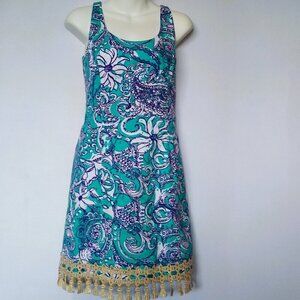 Lilly Pulitzer Eaton Shift Dress Size 4 Montauk Seaside Style Tassel Trim