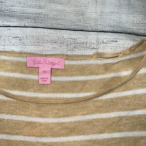 Lilly Pulitzer Elba Sweater Heathered Sand Bar Coastal Shell Stripe Tan White XS