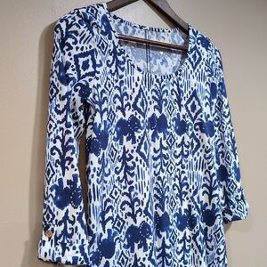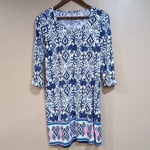 Lilly Pulitzer Elephant Ikat Ocean Ridge Dress Size XS Blue White 100% Cotton