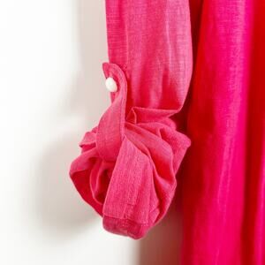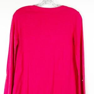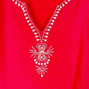 Lilly Pulitzer Eliana Tunic Top Coral/White Beaded Roll Sleeves Womens Size XS