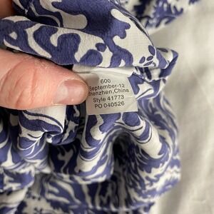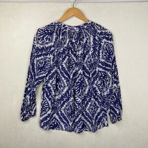 Lilly Pulitzer Elisa 100% Silk Long Sleeve Blue White Coral Blouse Size Small
