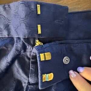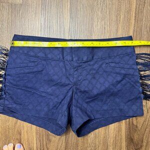 These Lilly Pulitzer Ellie shorts in navy blue are perfect for your next festival or concert. Featuring a boho monotone print and fringed tassel side detailing in a size 0. Made from cotton, elastane, and lycra for a comfortable fit.