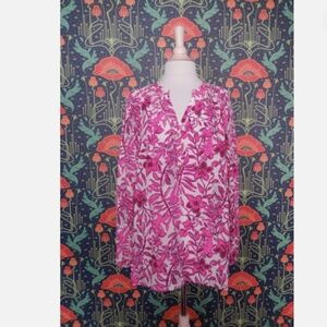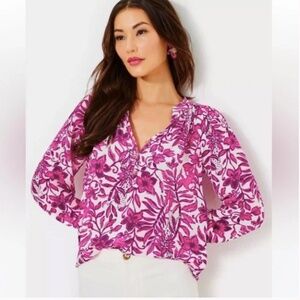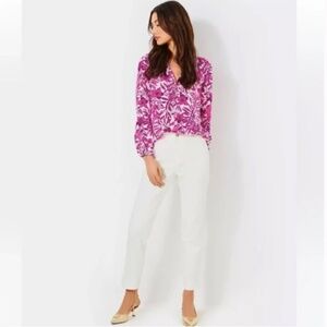 Lilly Pulitzer Elsa Elderflower Blossom Pink White Silk Blouse Top