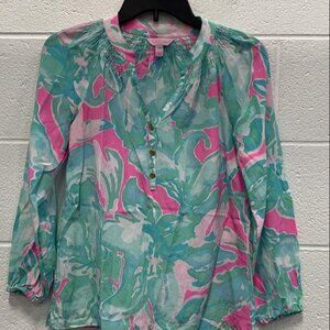 Lilly Pulitzer Elsa Silk Blouse XXS Alessia Pink