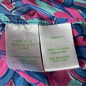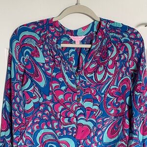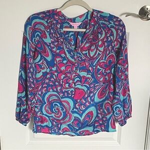 Lilly Pulitzer Elsa Silk Blue/Pink Reel Me Resort Top XS - style 41773