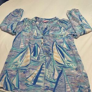 Lilly Pulitzer Elsa Silk Top Light Lilac Verbena Aboat Time Size Small