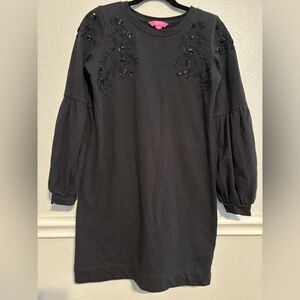 Lilly Pulitzer Embellished Bartlett Sweatshirt Dress Onyx Black Bead Sequin SM