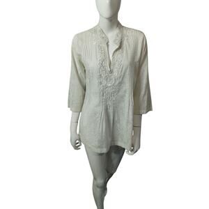 Lilly Pulitzer Embellished Pleaded Bohemian Beachy Pintuck Cotton Top size S