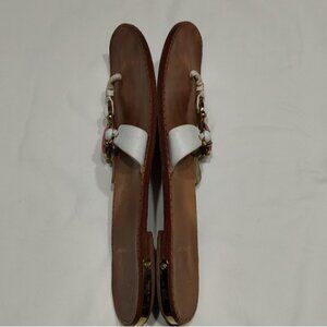 Lilly Pulitzer white leather flip-flops with embellishments.