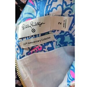 Lilly Pulitzer Embroidered My Fans Split Neck Shift Dress Women Size 2 Blue Pink