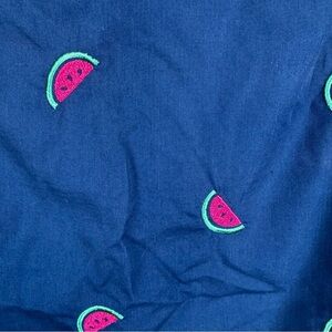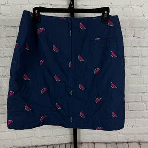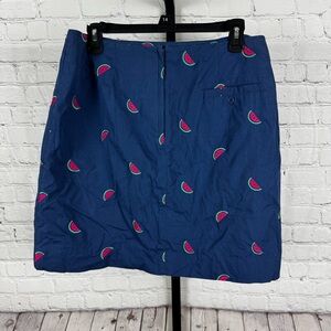 Lilly Pulitzer skirt size 12. Navy pencil skirt with cute embroidered watermelons. Good condition, except for some slight wash wear. Smoke free home.