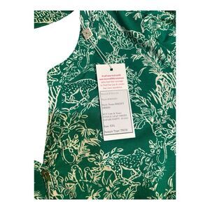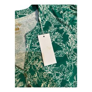 Lilly Pulitzer Emery Dress Womens Size XXL Fiddle Leaf Green Safari Party is a vibrant 100% cotton dress featuring Lillys signature tropical print in a rich green and white palette. This piece is new with tags and labeled as a sample, meaning it was created for internal use such as photo shoots, design review, or quality testing before full production.