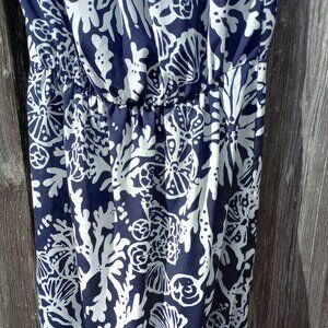 Lilly Pulitzer Emmett Maxi In the Groove Navy White Strapless Dress Sz Small