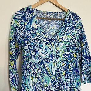 Lilly Pulitzer Erin Blue Crush After Party Mini 3/4 Sleeve V Neck Dress Size XS