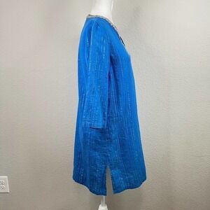 Lilly Pulitzer Esme Tunic Women's S Lurex Crinkle Blue Gold Metallic Swim Cover