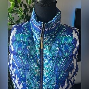 Lilly Pulitzer Essia Masterpiece Puffer Vest in Blue Ikat Print Size: S