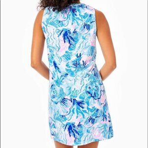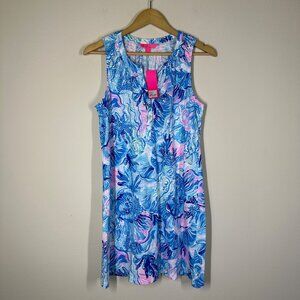 Lilly Pulitzer Essie Dress Womens Size M Saltwater Blue Shade Preppy Resortwear