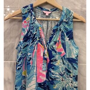 This Lilly Pulitzer Essie shift dress in size XSmall is perfect for any casual or travel occasion. The dress features a beautiful Hey Bay Bay Sailboat Print that adds a touch of fun and color to your wardrobe. The sleeveless design and V-neckline make it comfortable and stylish while the knee-length cut adds a touch of elegance. Made of cotton and modal materials, this dress is both soft and durable. It's a great addition to any woman's wardrobe, especially those who love to stay stylish while comfortable.