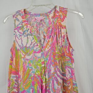 Lilly Pulitzer Essie Tank Top Blouse Scuba to Cuba Burnout Cotton Pink Size XS