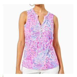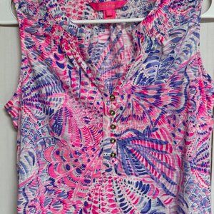 Lilly Pulitzer Essie tank, Berry Sea You Soon top, cotton sleeveless blouse, popover tank medium, summer resort wear #LillyPulitzer #EssieTank #BerrySeaYouSoon #CottonTop #WomensMedium #Sleeveless #ResortWear #PreownedFashion