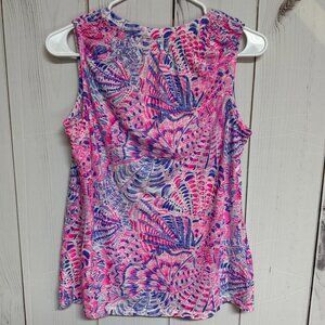 Lilly Pulitzer Essie Tank Top M “Berry Sea You Soon” Cotton EUC