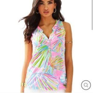 Lilly Pulitzer Essie Top - V-Neck Button Down Shirt Pink Pout Shellabrate Size S