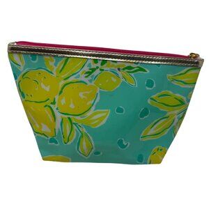 Lilly Pulitzer Estée Lauder Lemon Print Cosmetic Pouch Pink Zipper PVC