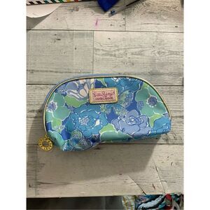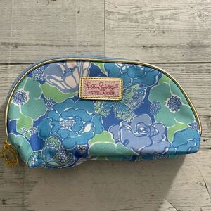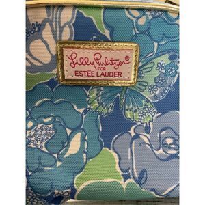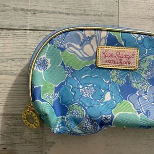 Lilly Pulitzer Estee Lauder Blue Floral Makeup Cosmetic Case Bag Zipper Pouch.