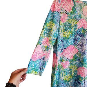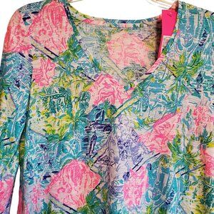 Lilly Pulitzer Etta Floral Beachy Coastal 3/4 Sleeve Top XS NWT