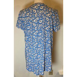 Lilly Pulitzer Etta V Neck Shirt Top Short Sleeve Blue Cream Floral Large L